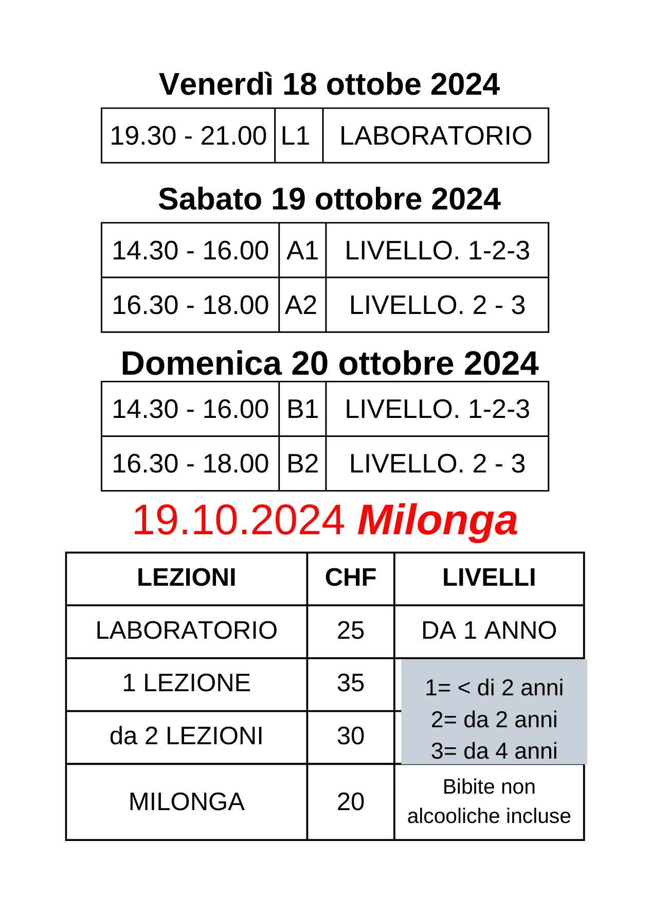 (Attenzione TUTTE le lezioni e la Milonga si svolgeranno a La Casa del Tango di Breganzona)